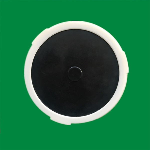 在曝氣膜片與支撐板之間采用密封性能更好的反扣折式結構,并有效地避免了膜片的脫落現象。 曝氣器膜片采用一種內在的止回閥設計一一中心加厚無孔設計,當關閉供氣后,在水壓及膜片自身彈性的作用下,膜片的中心回落在薄膜托板的孔上,而未打孔的區域恰好覆蓋住空氣釋放孔,像止回閥一樣能防止液體倒流進曝氣系統中去。